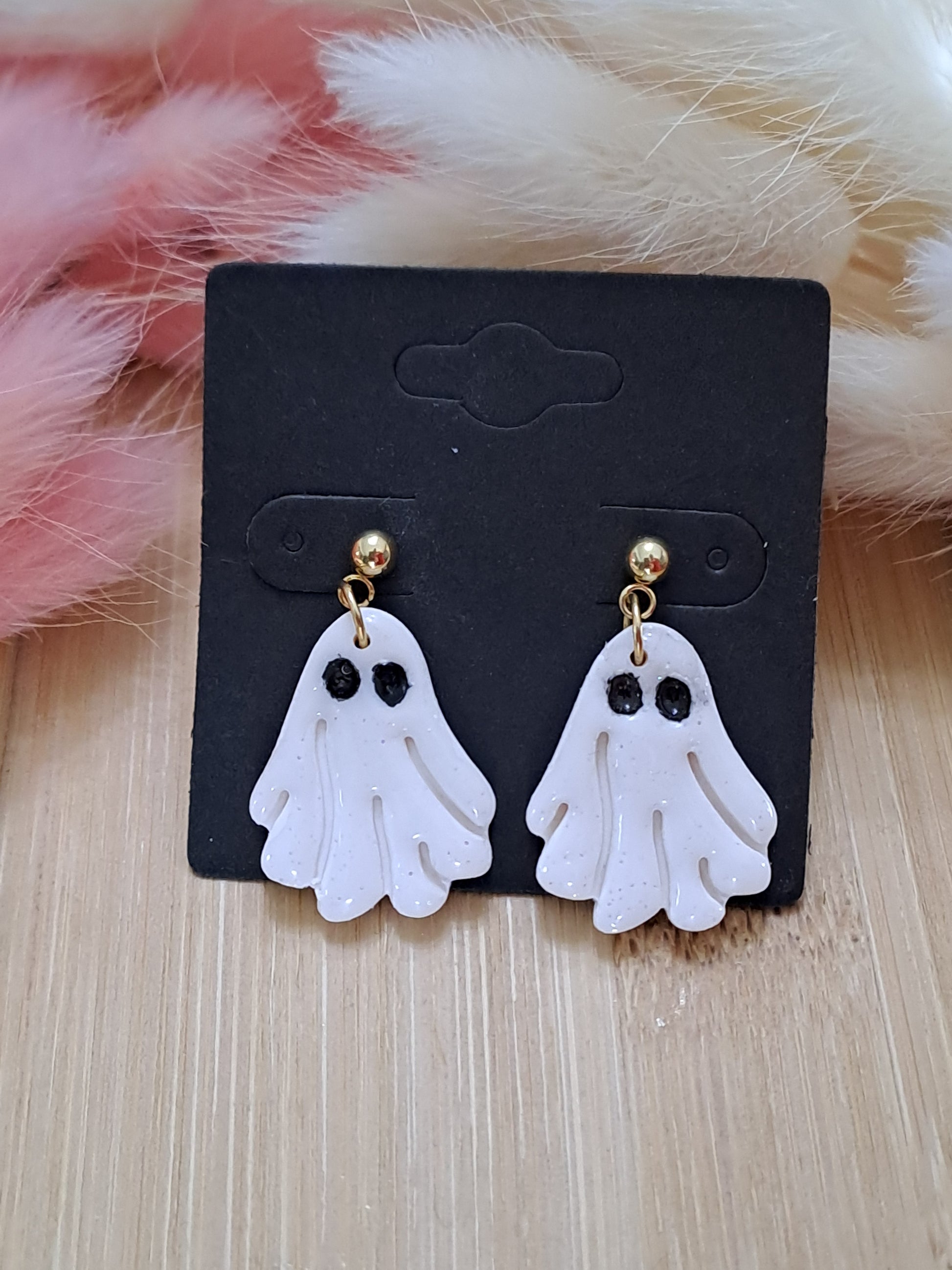Boucles d’oreilles Fantômes – Blanc pailleté