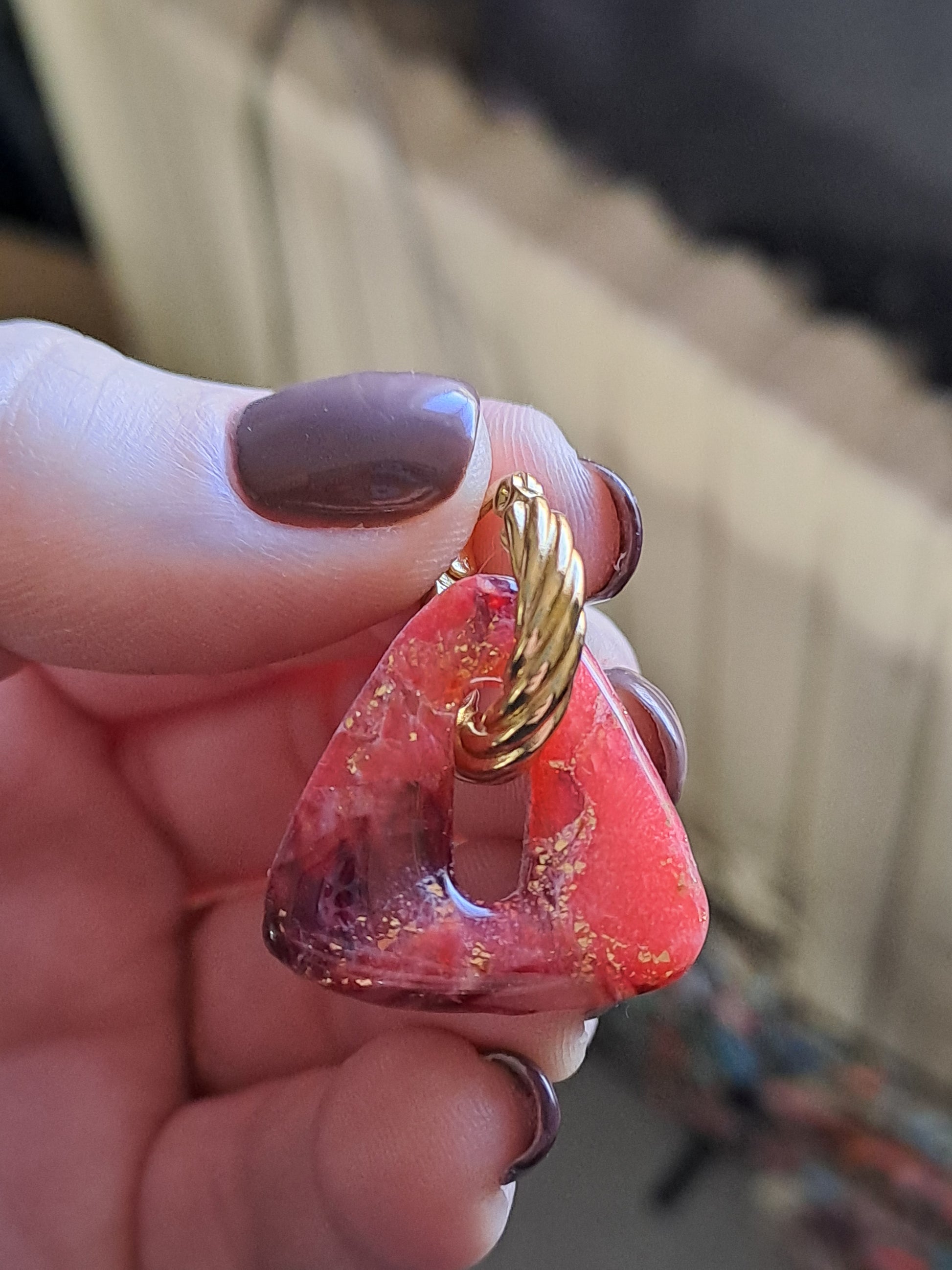✨️ Élégantes et lumineuses, les pampilles Aria mêlent des nuances bordeaux et corail avec de délicats éclats dorés pour un effet marbré tout en douceur.