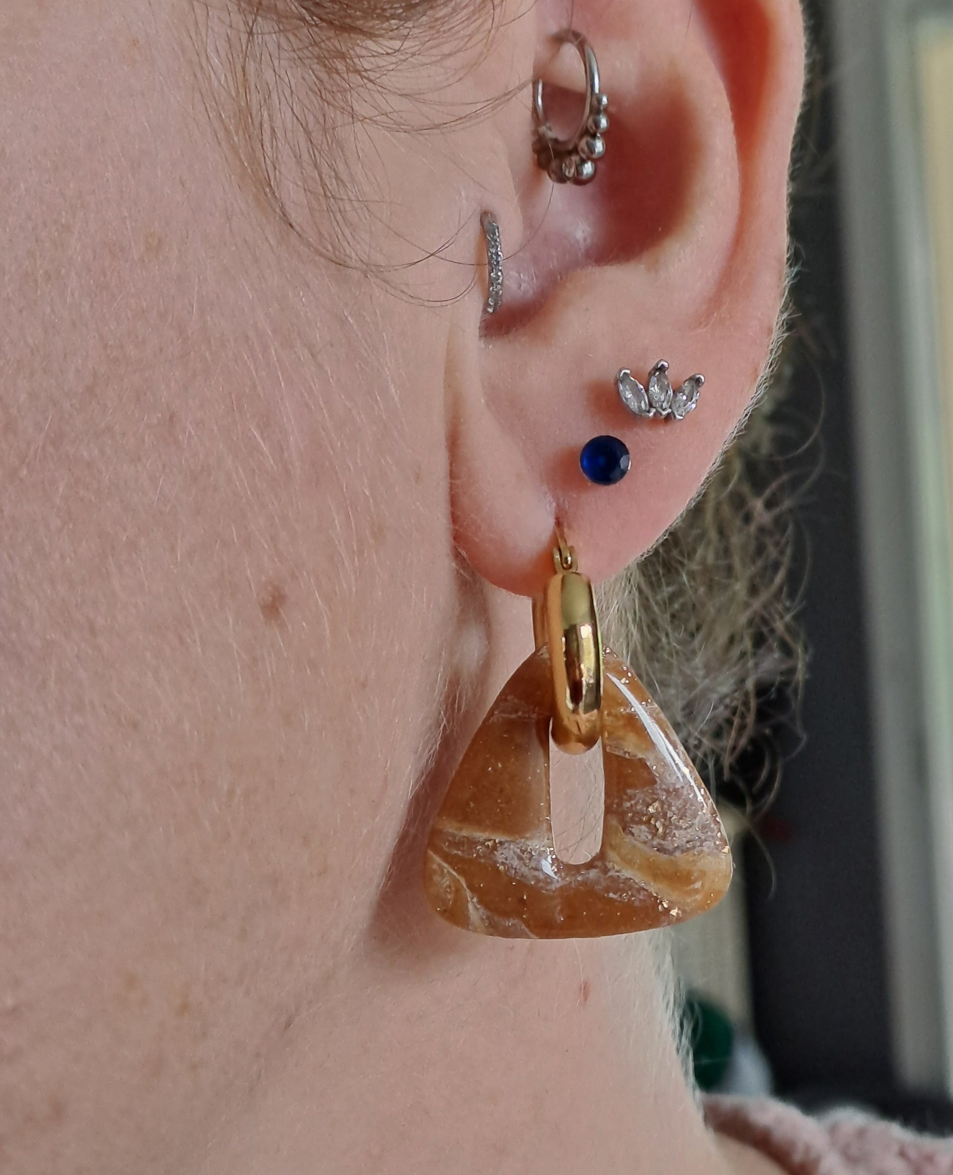 ✨️ Élégantes et lumineuses, les pampilles Aria mêlent des nuances de marron avec de délicats éclats dorés pour un effet marbré tout en douceur.