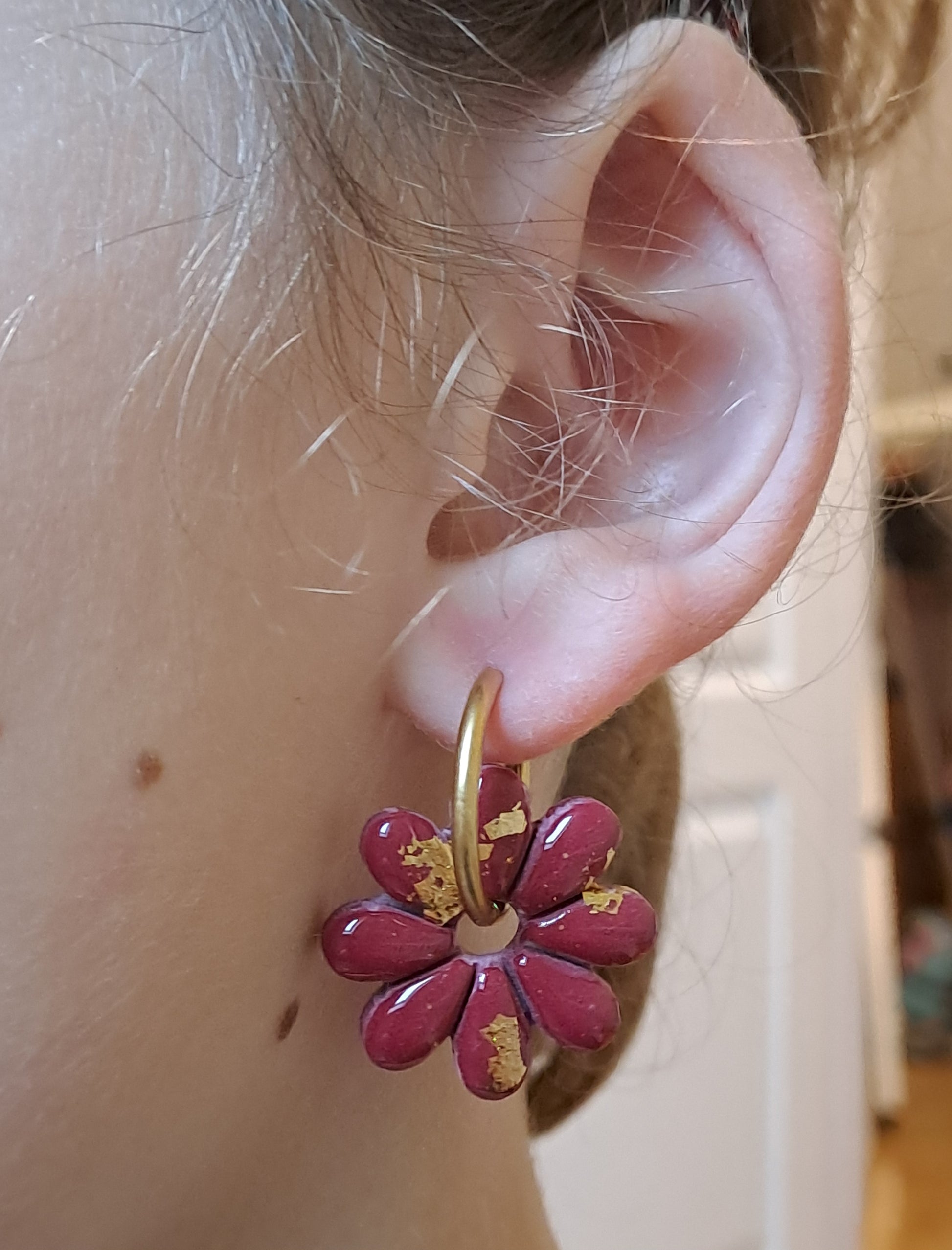 Modelée à la main en argile polymère, elles se glissent facilement sur vos créoles pour créer un bijou unique et modulable.