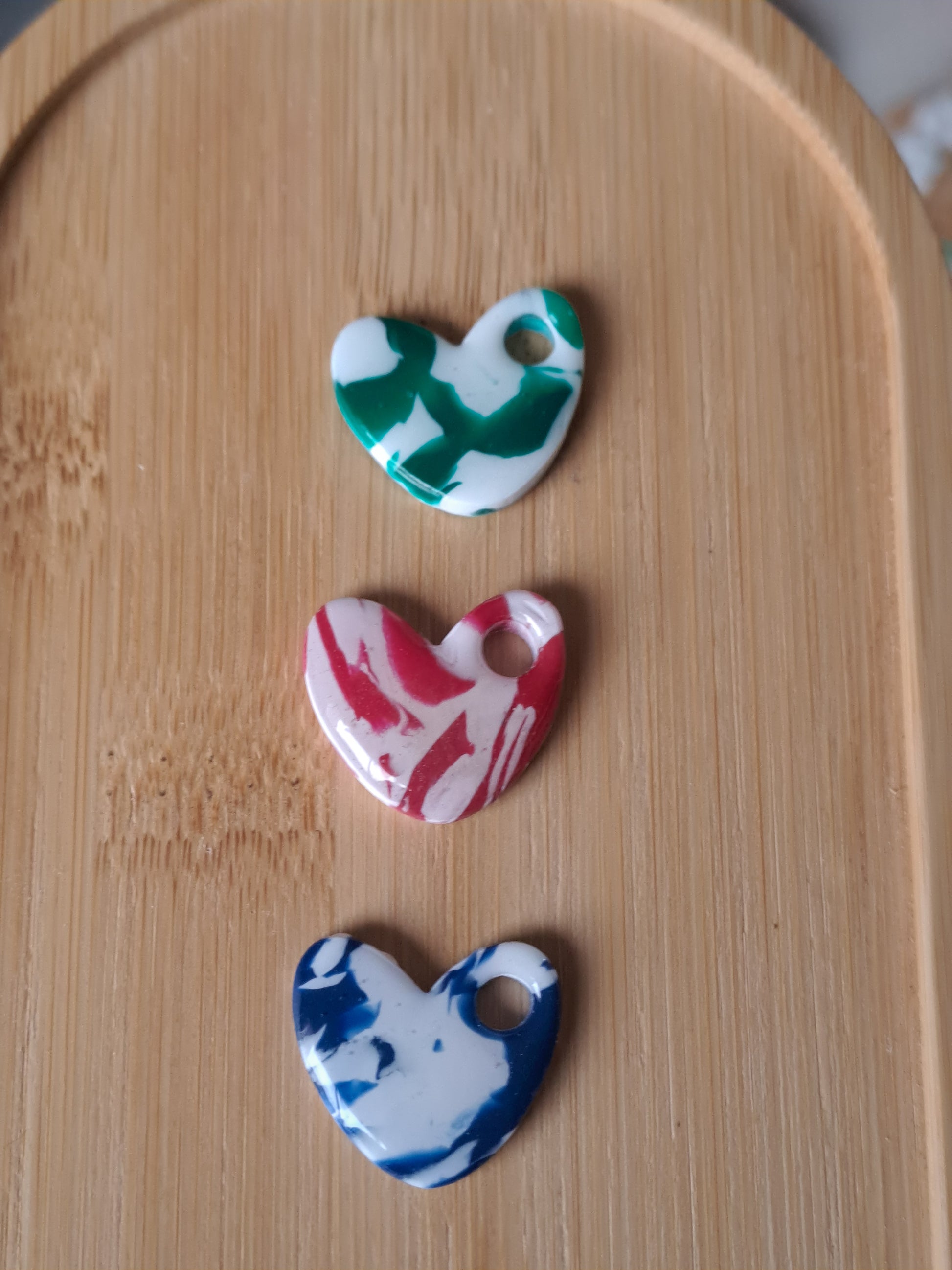 Ajoutez une touche douce et colorée à vos créations avec cette pampille en forme de cœur, façonnée à la main en argile polymère ✨️