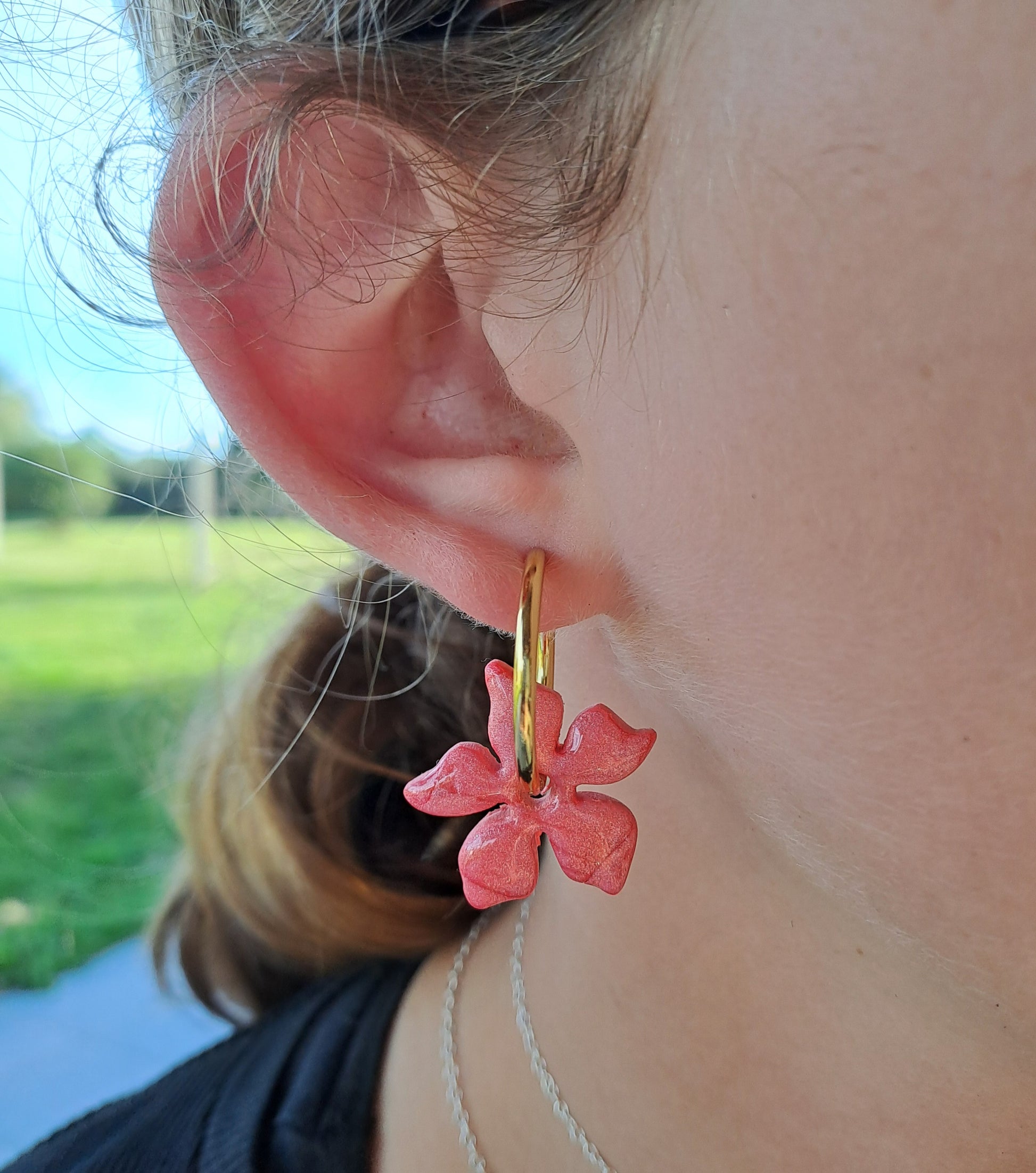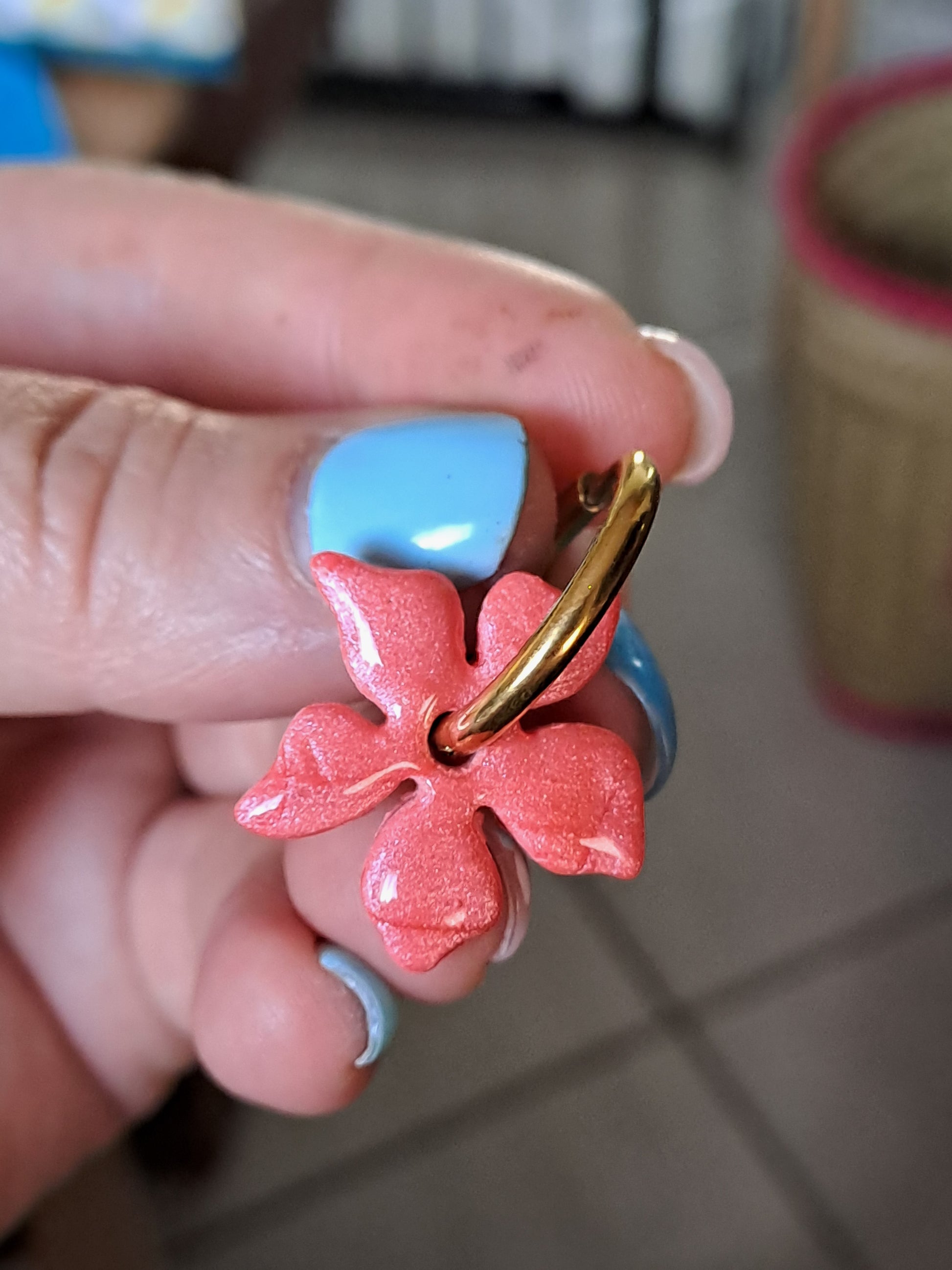 Les pampilles Floréa se parent d’un lumineux corail, une teinte vive et solaire qui met instantanément en valeur vos boucles.