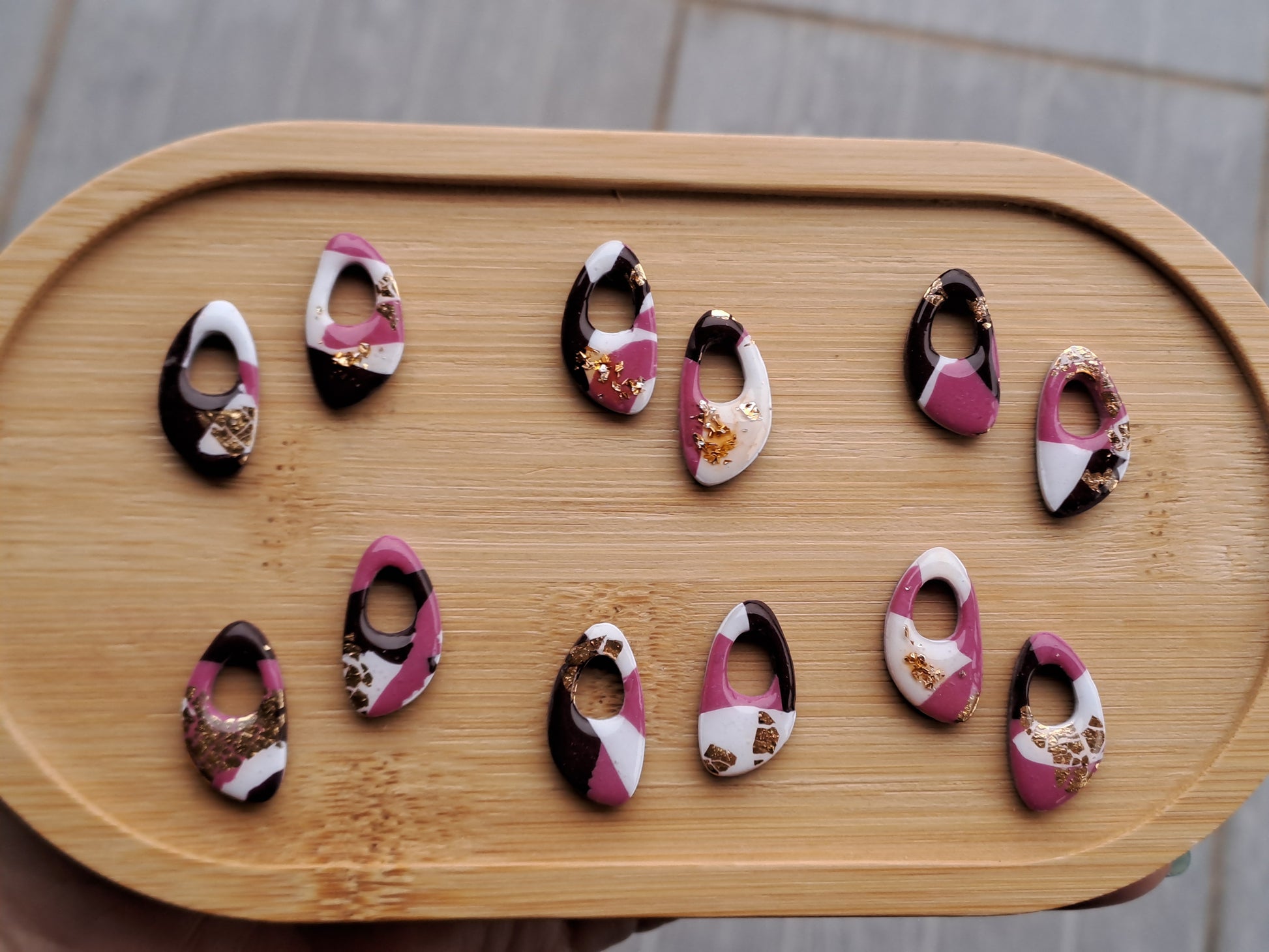 Chaque pampille est façonnée à la main en argile polymère, puis poncée, polie et vernie avec soin pour un rendu unique et lumineux.