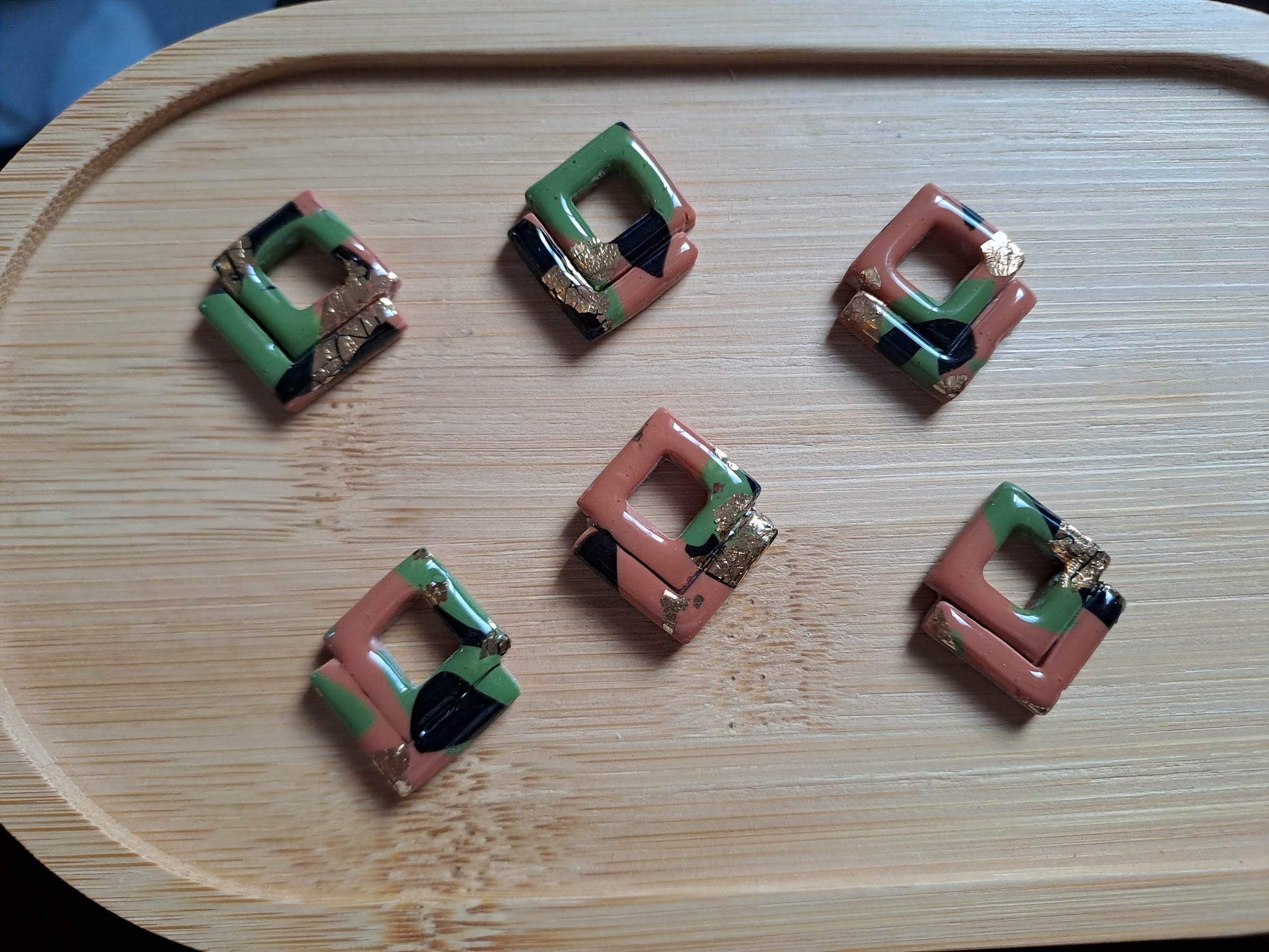 Un mariage vibrant de terracotta, de vert olive naturel et de noir intense, sublimé par des éclats de feuille d’or 🍂.