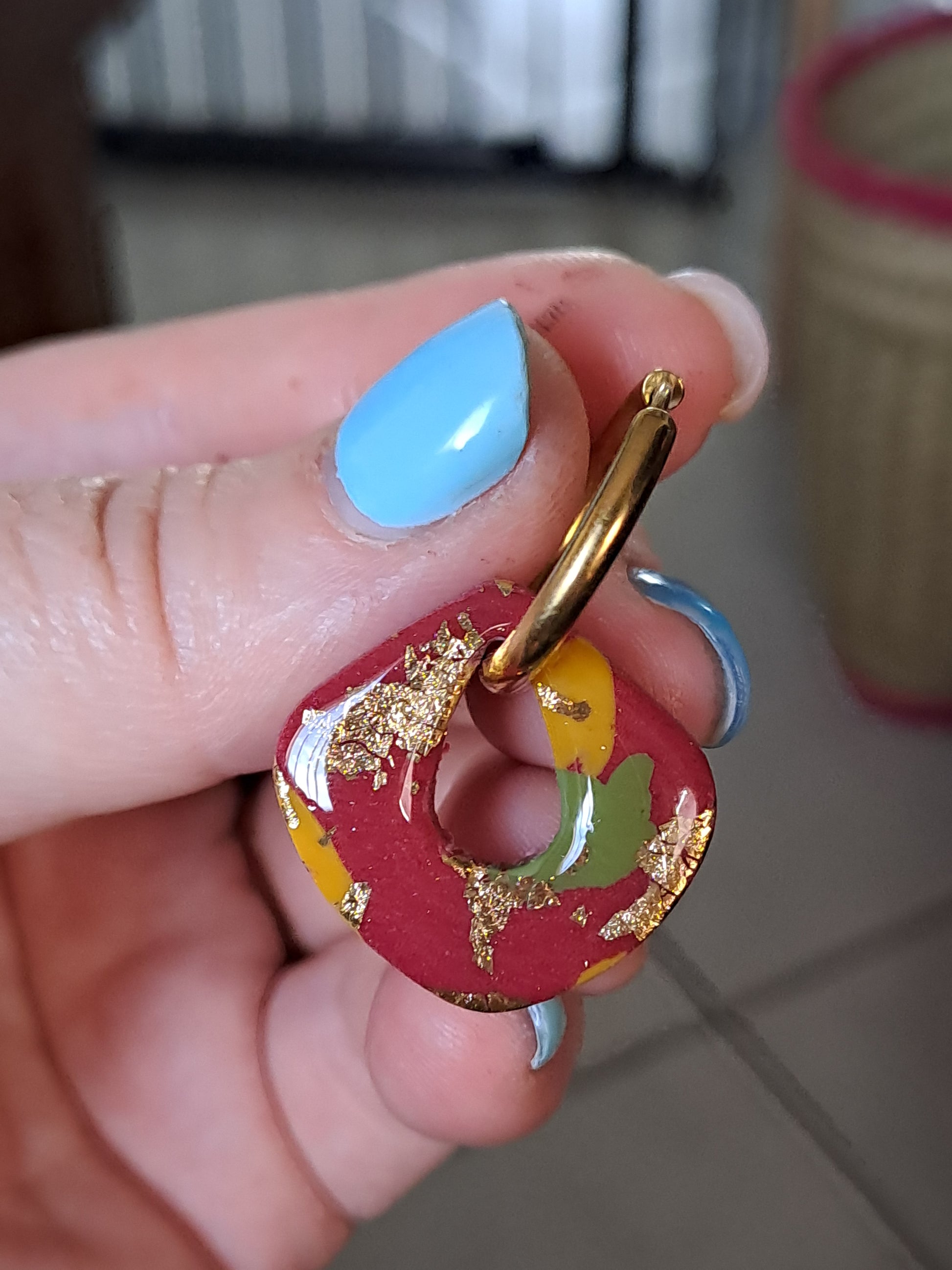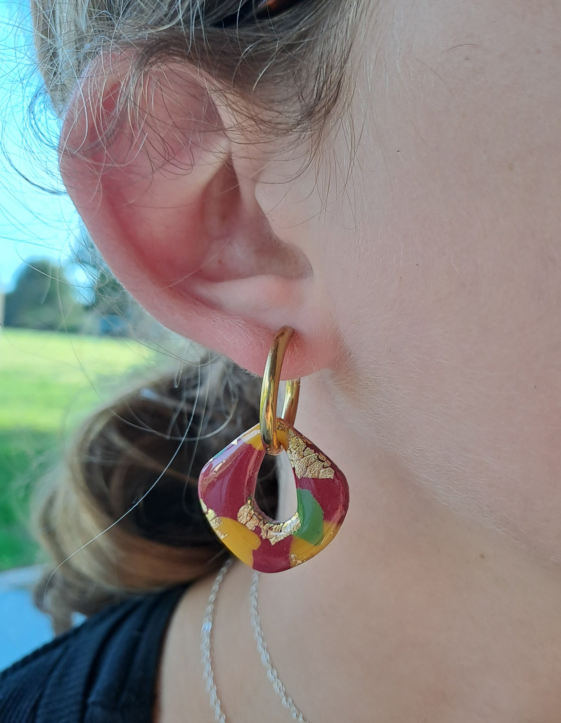 Les pampilles Nora séduisent par leur forme géométrique et leur palette audacieuse.