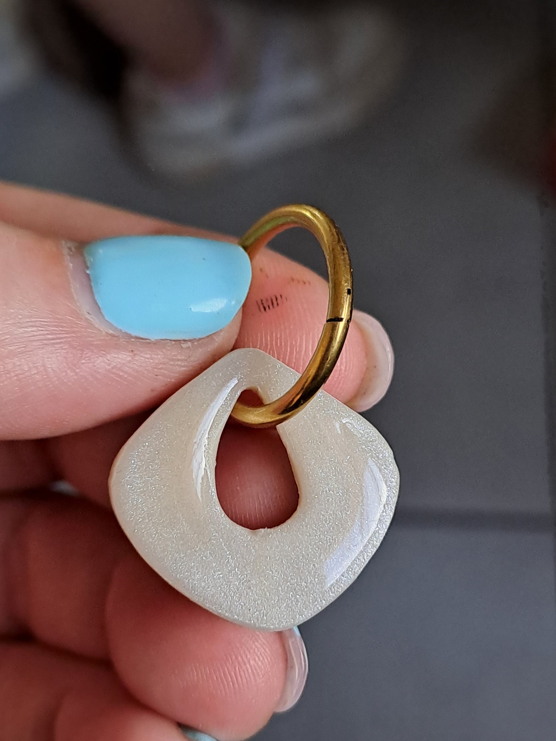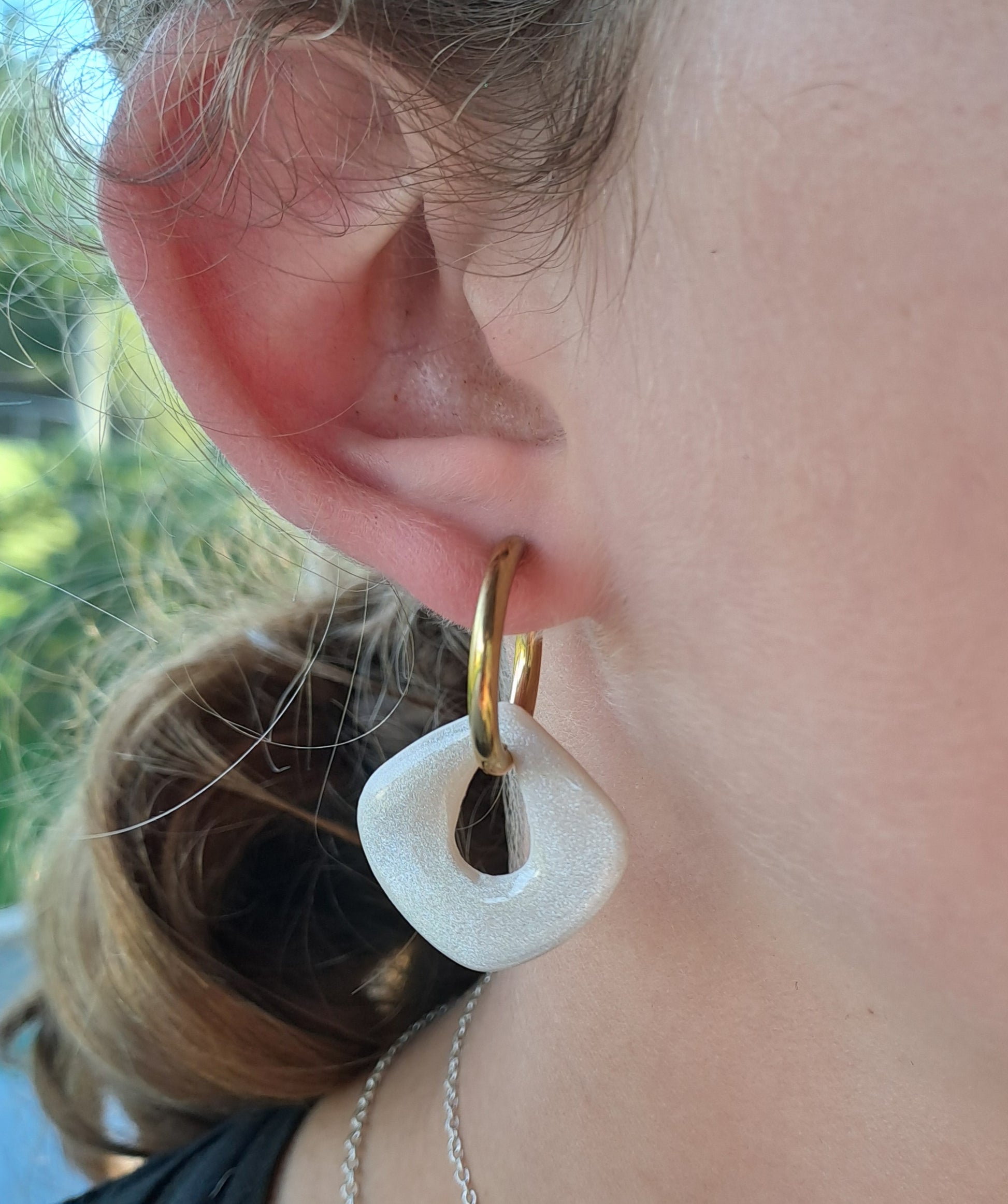 Les pampilles Nora allient l’élégance de leur forme géométrique à la douceur d’une finition nacrée qui capte délicatement la lumière.