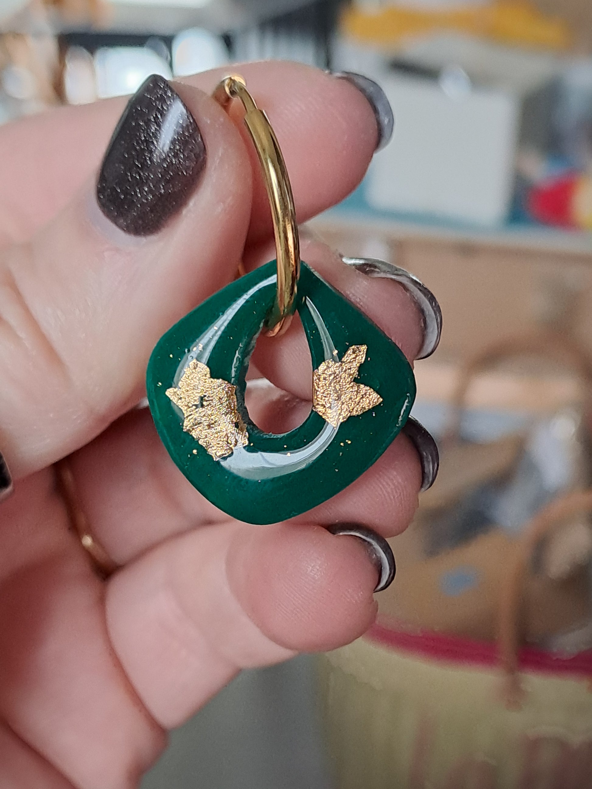 💎Pampilles Nora – Vert & Feuilles d’Or