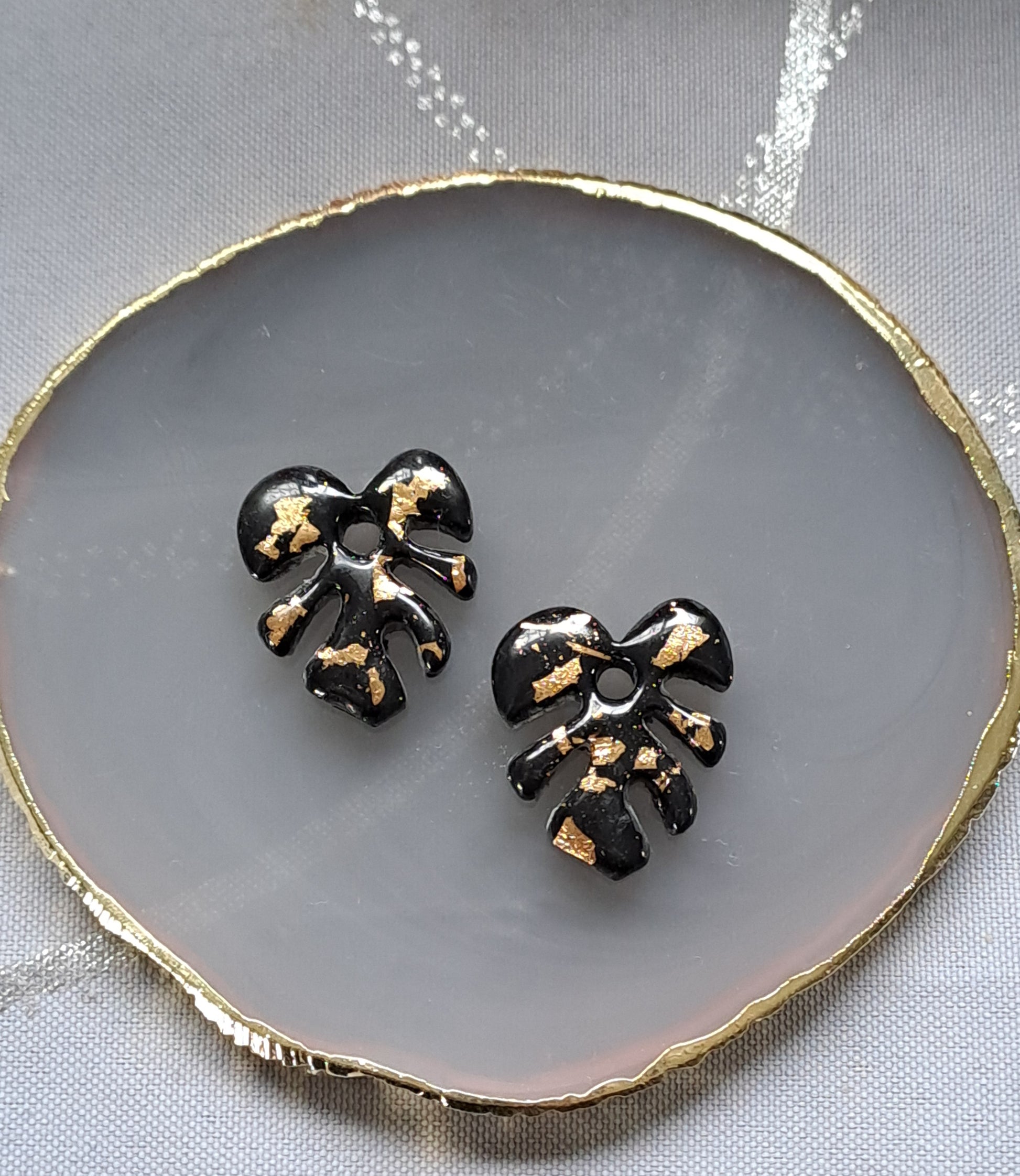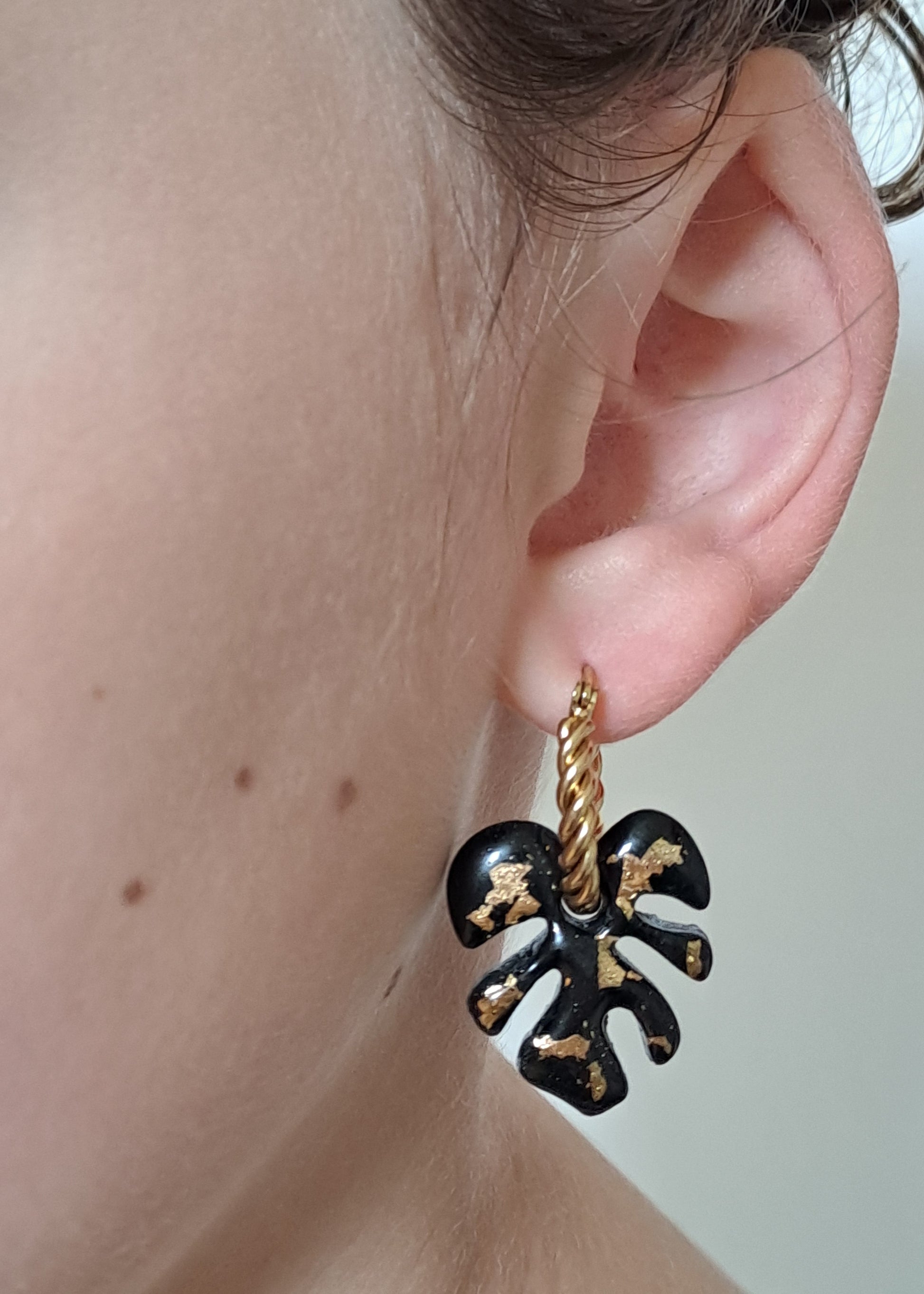 Leur finition noire profonde, sublimée par de délicates touches de feuilles d'or est parfaite pour illuminer vos créoles interchangeables.