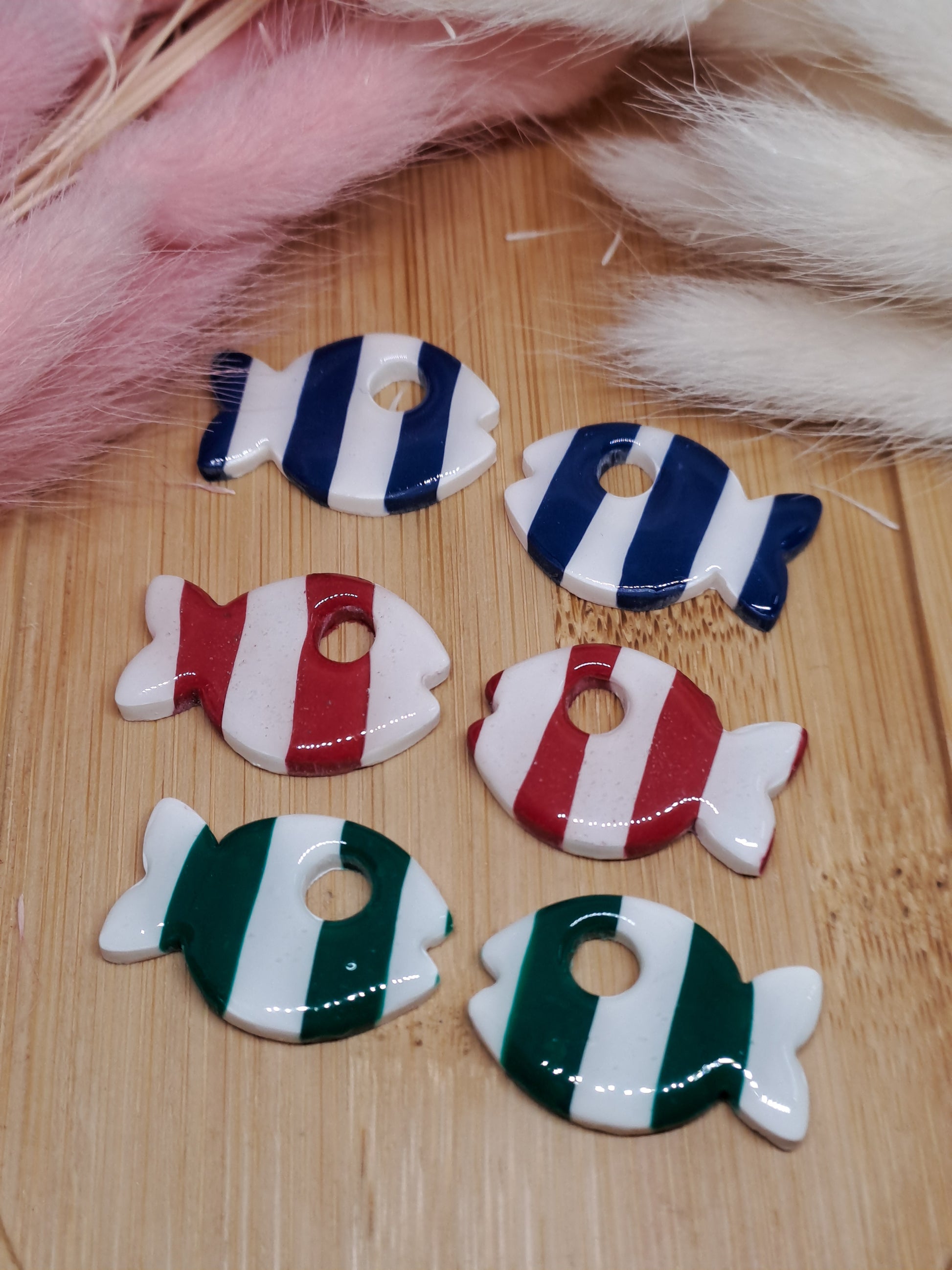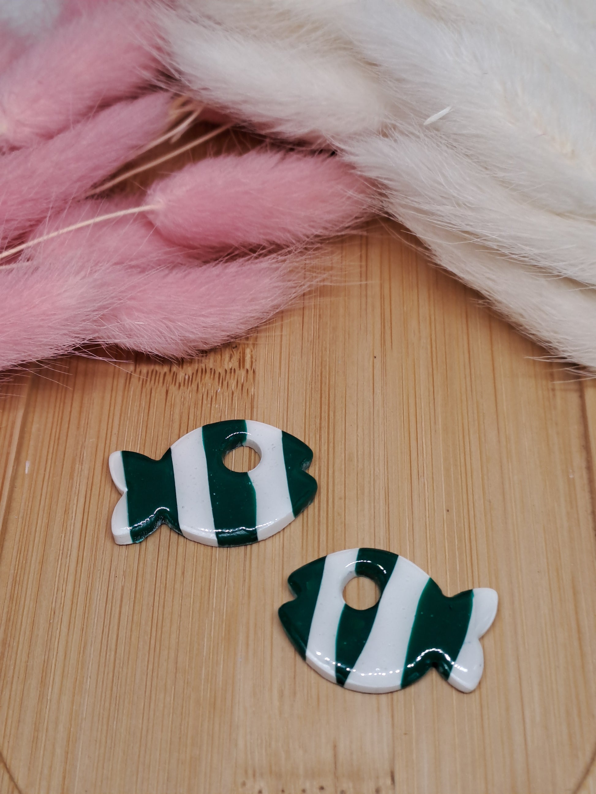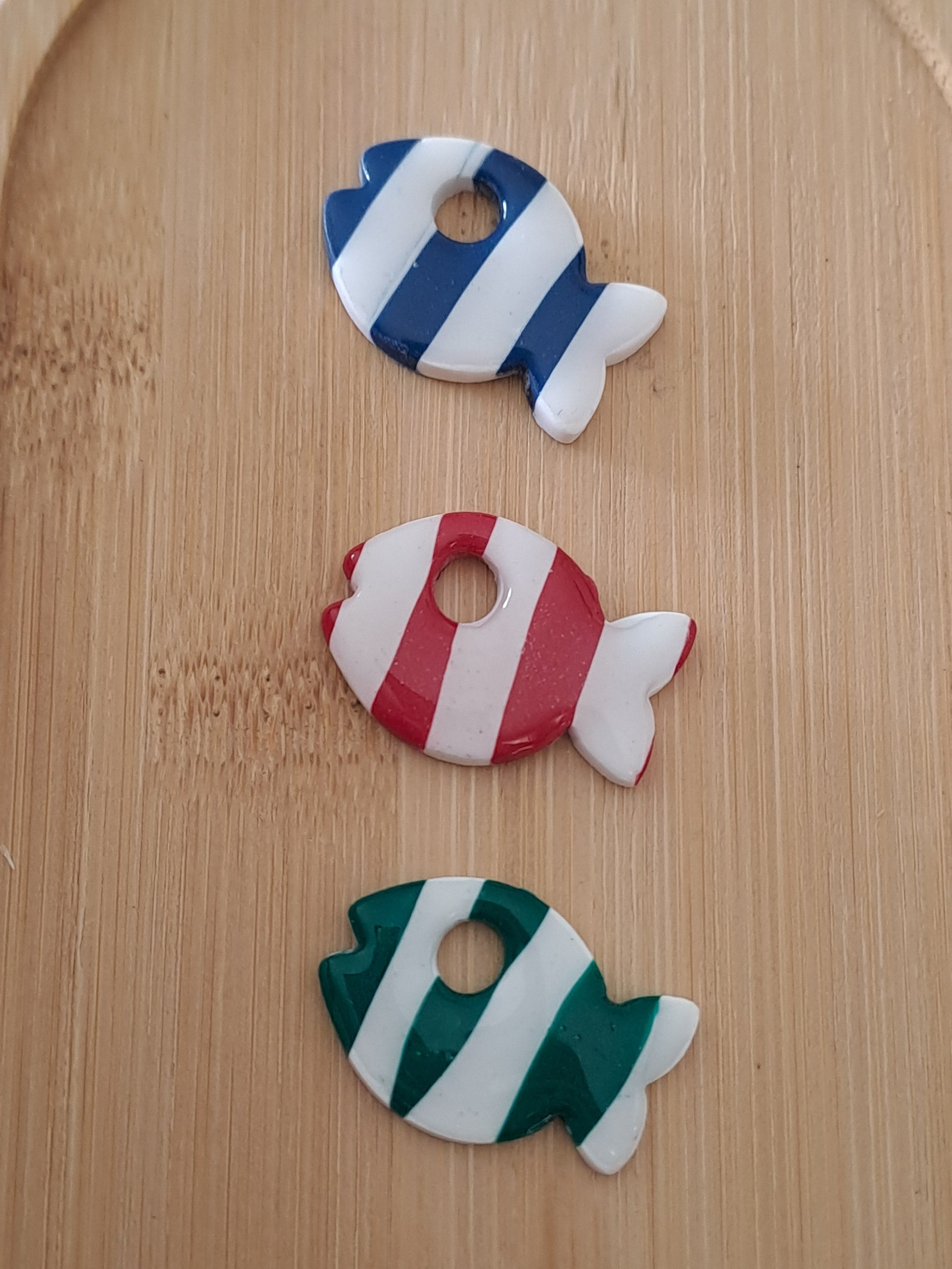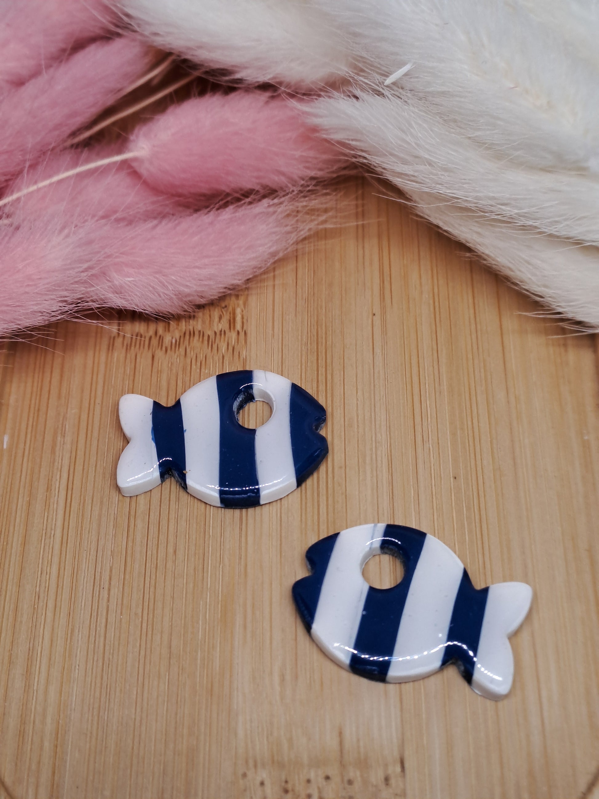 Apportez une touche marine et poétique à vos créations avec cette pampille en forme de poisson, façonnée à la main en argile polymère ✨️