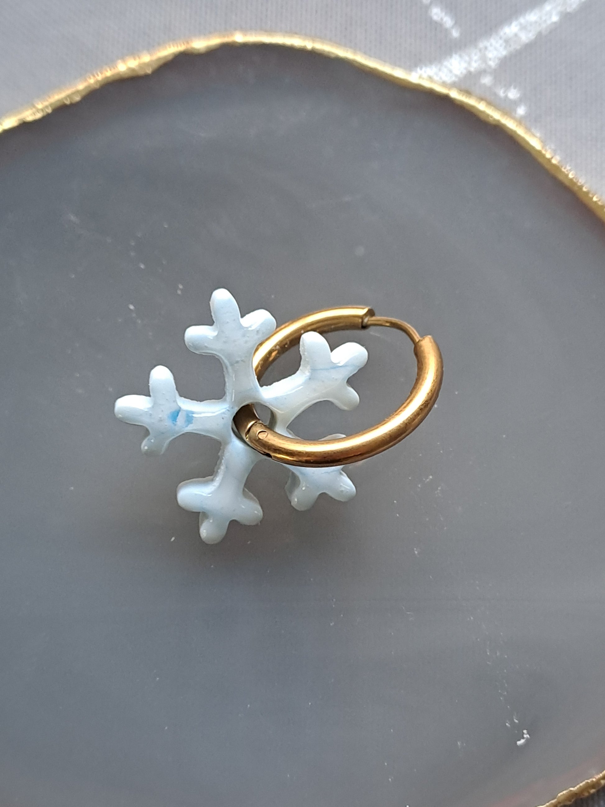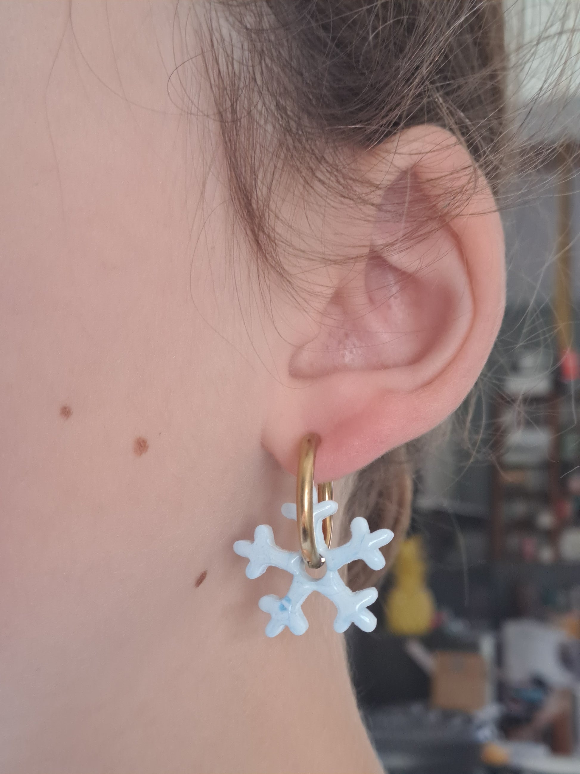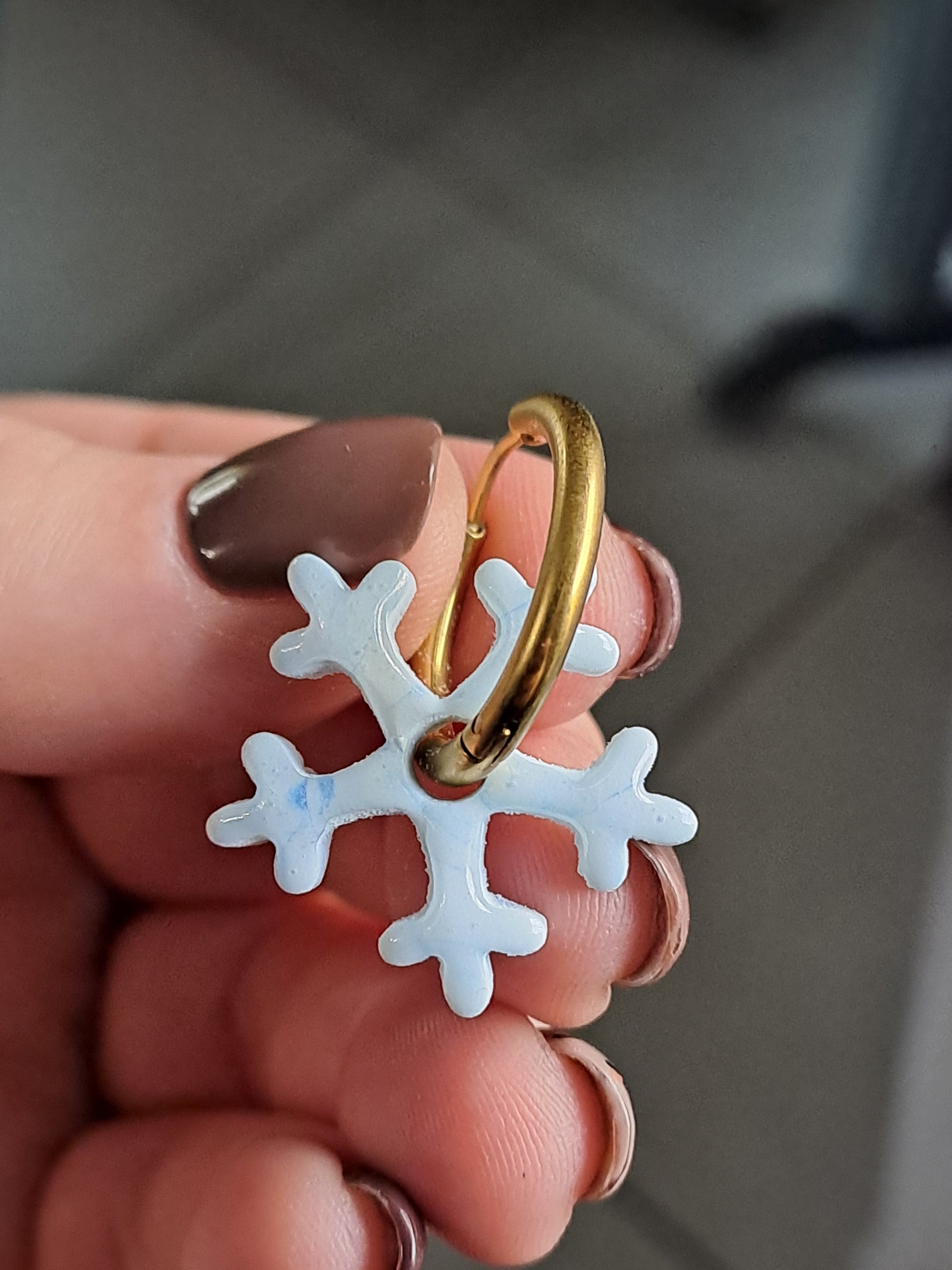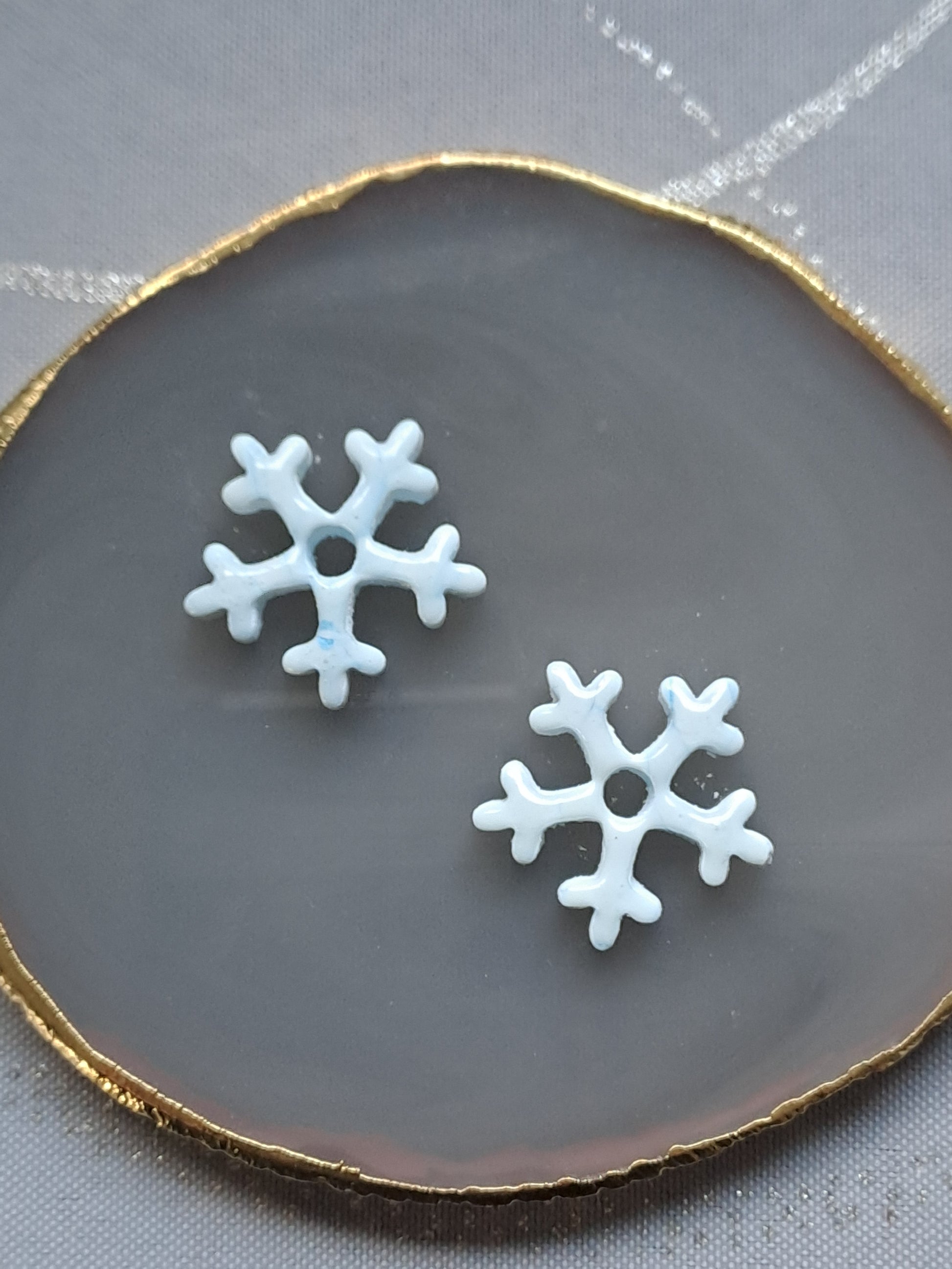 Façonnées à la main en argile polymère, leur teinte bleu très clair, presque blanche, reflète la pureté de la neige et la douceur des journées givrées.